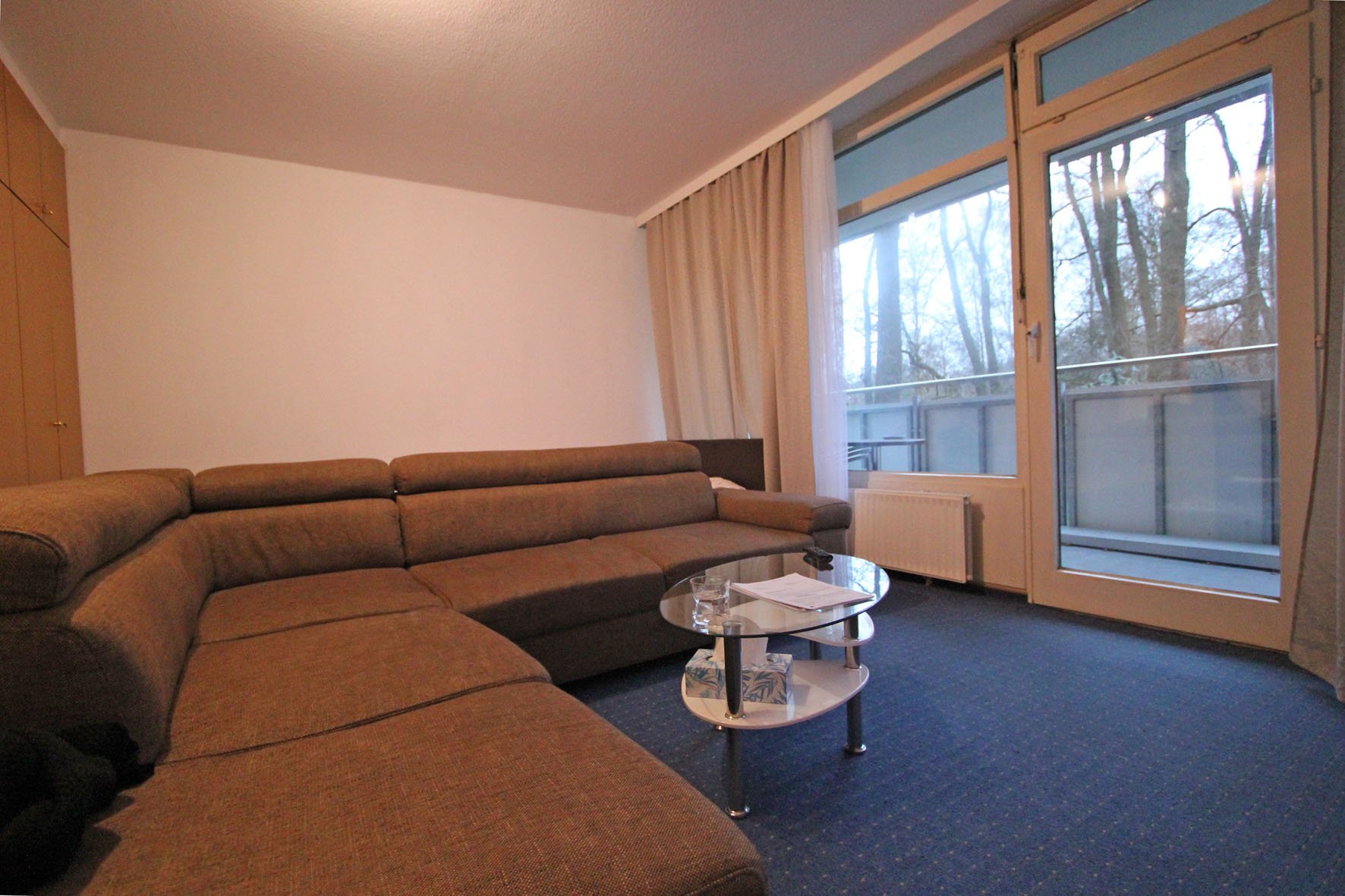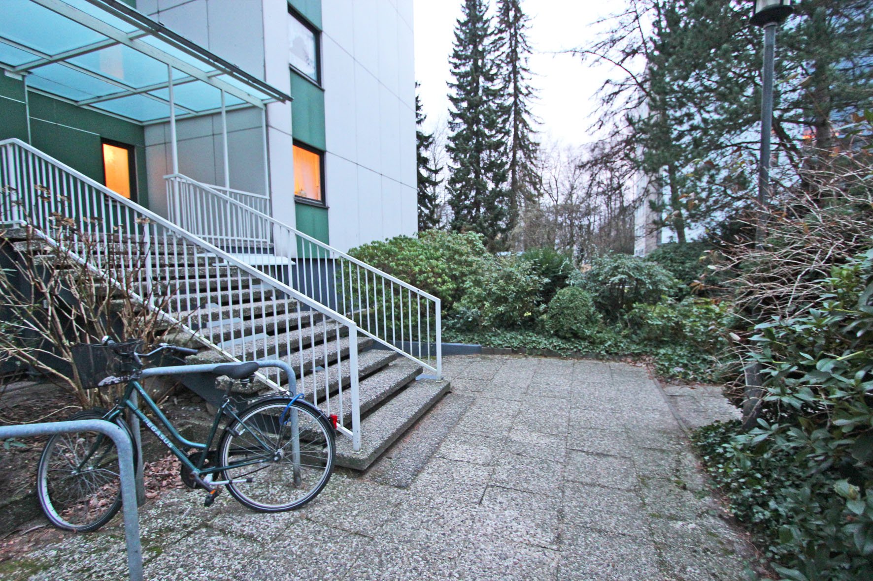 Es handelt sich um eine Eigentumswohnung im Erdgeschoss einer achtgeschossigen Hochhausanlage. Das Haus befindet sich in zweiter Reihe und somit nicht direkt an der Strasse. Im Zimmer und auf dem Balkon genießen Sie durch die Südausrichtung ab Mittags die Sonne. Viel Tageslicht erhält die Wohnung durch die breite Fensterfront. Auf dem großzügigen Balkon lässt es sich gut verweilen. Er bietet einen tollen Blick auf den benachbarten Park.